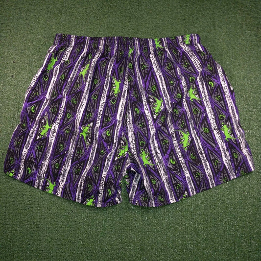Gecko Hawaii Vintage 90s Retro Day-Glo Neon Fresh Prince Swim Shorts Purple Design Unisex Beach Tropical Swim Trunks